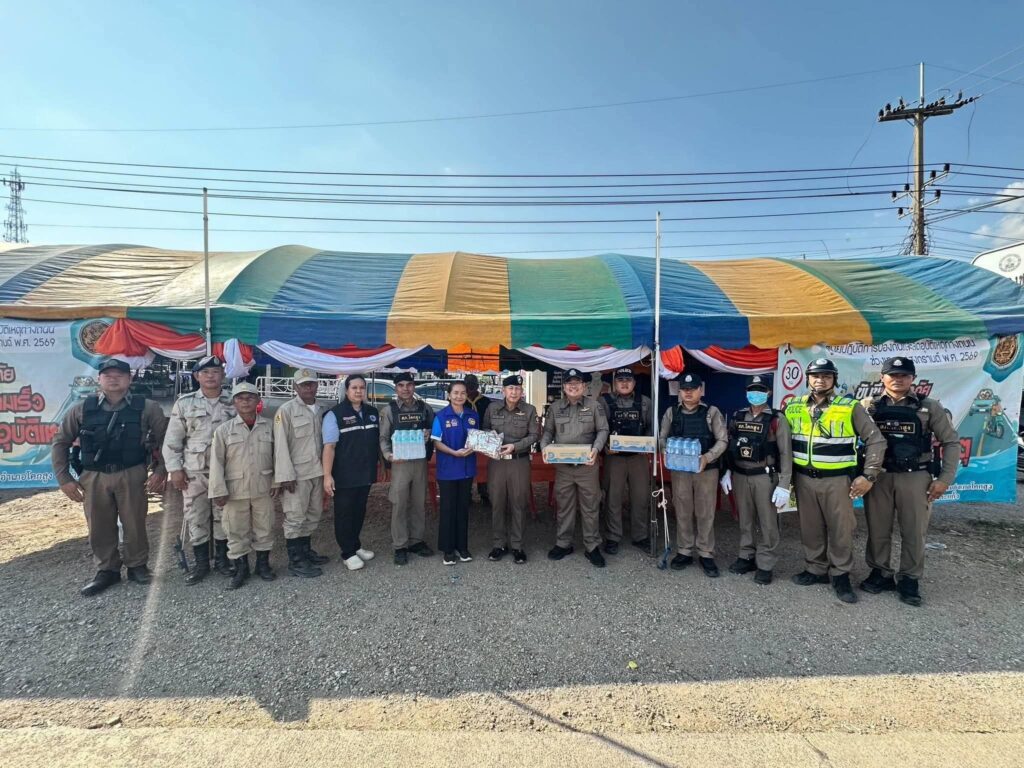 ในการนี้ ได้มอบสิ่งของเพื่อเป็นขวัญและกำลังใจแก่เจ้าหน้าที่ผู้ปฏิบัติหน้าที่ในช่วงเทศกาลสงกรานต์ ณ จุดบริการประชาชนในพื้นที่ต่างๆ