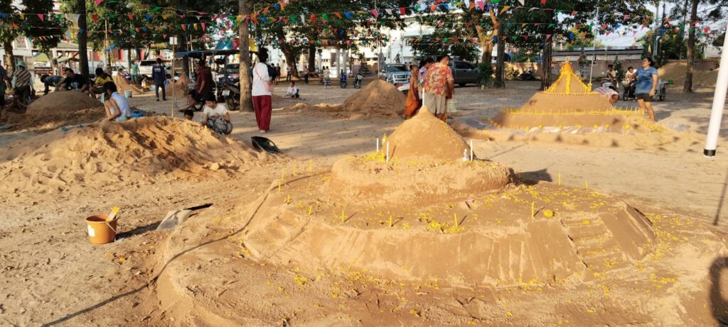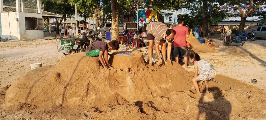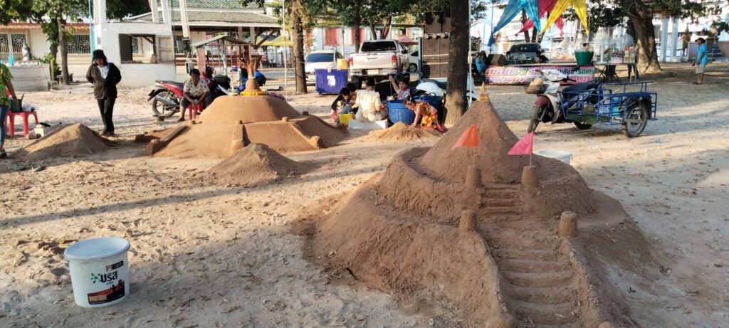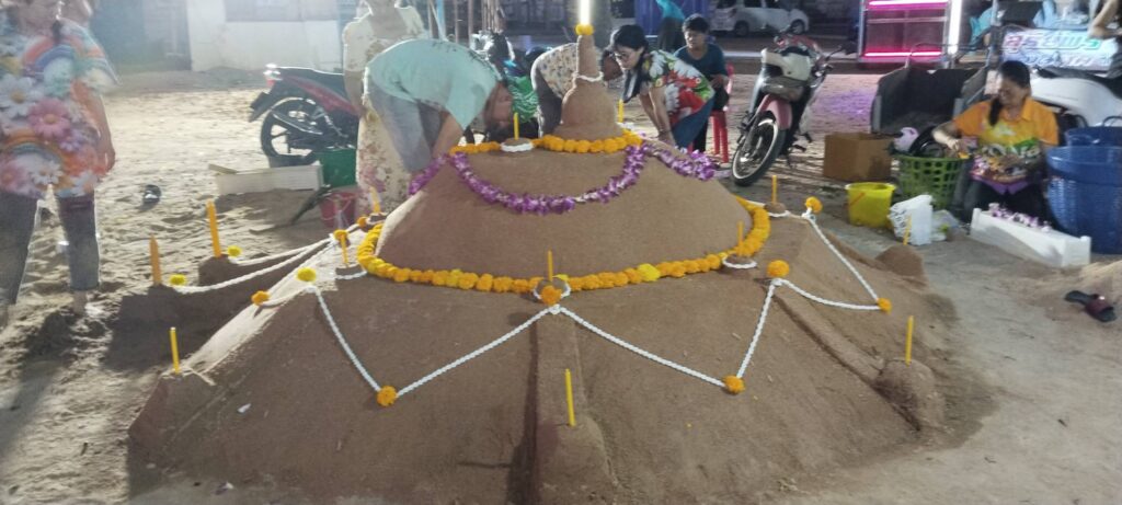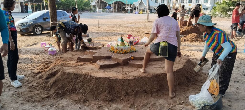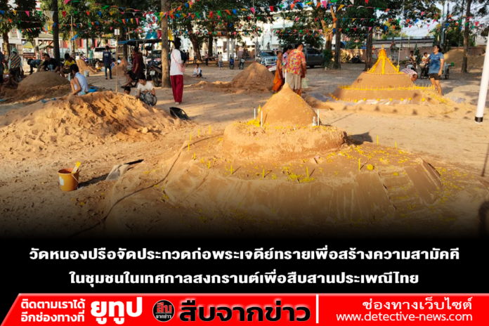 เมื่อเวลา 17.00 น. วันที่ 15 เม.ย. 2569 ที่วัดหนองปรือ ตำบลบึง อำเภอศรีราชา ทางคณะกรรมการวัดหนองปรือได้จัดให้มีการก่อพระเจดีทรายขึ้น การก่อพระเจดีย์ทราย เป็นกิจกรรมหนึ่งในเทศกาลวันสงกรานต์ที่มีมาช้านาน โดยกลอุบายให้คนรู้จักรักสามัคคีร่วมแรง ร่วมใจกันทำกิจกรรมก่อพระเจดีย์ทรายร่วมกัน ขณะเดียวกันก็ได้ประโยชน์จากการกระทำคือเป็นการเชิญชวนให้คนร่วมกันทำบุญกุศล โดยใช้ศาสนาเป็นตัวเชื่อมให้คนรู้จักเสียสละด้วยความเต็ม เป็นการสร้างสาธารณประโยชน์ให้กับสังคมอีกทางหนึ่ง ทางนายชัยณรงค์ ทองศิริ กำนันตำบลบึงพร้อมด้วยคณะกรรมการวัดบึงราชาวาสและนายสงกรานต์ ภาชนะ รองนายกเทศมนตรีเทศบาลนครเจ้าพระยาสุรศักดิ์ พร้อมด้วยผู้นำท้องถิ่นในพื้นที่ตำบลบึง ได้เล็งเห็นความสำคัญของการสืบสานประเพณีไทยในช่วงเทศกาลสงกรานต์ จึงได้ให้มีการจัดการประกวดก่อพระเจดีย์ทรายขึ้นภายในวัดหนองปรือ เพื่อสร้างความสามัคคีของชาวบ้านในชุมชน โดยการแข่งขันการก่อพระเจดีย์ทรายเป็นไปอย่างสนุกสนานมีทั้งผู้สูงอายุ เด็กและเยาวชน เข้ามาร่วม ซึ่งการก่อพระเจดีย์ทรายนั้นมีทั้งประเภทความคิดและประเภทสร้างสรรค์ ในครั้งนี้นี้ยังได้เชิญผู้ทรงคุณวุฒิเป็นคณะกรรมการตัดสินเพื่อความบริสุทธิ์ยุติธรรมในการประกวดในครั้งนี้ ซึ่งมีผู้เข้าร่วมการก่อกองพระทราย เพิ่อร่วมประกวดในครั้งนั้จำนวน 11กอง ซึ่งก็จะได้มีการมอบรางวัลผู้ที่ก่อพระเจดีย์แบบสร้างสรรค์ แบบความคิด โดยมีรางวัลชนะเลิศและรางวัลรองชนะเลิศรวมถึงรางวัลชมเชยกันในภาคกลางคืน