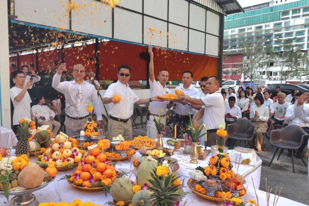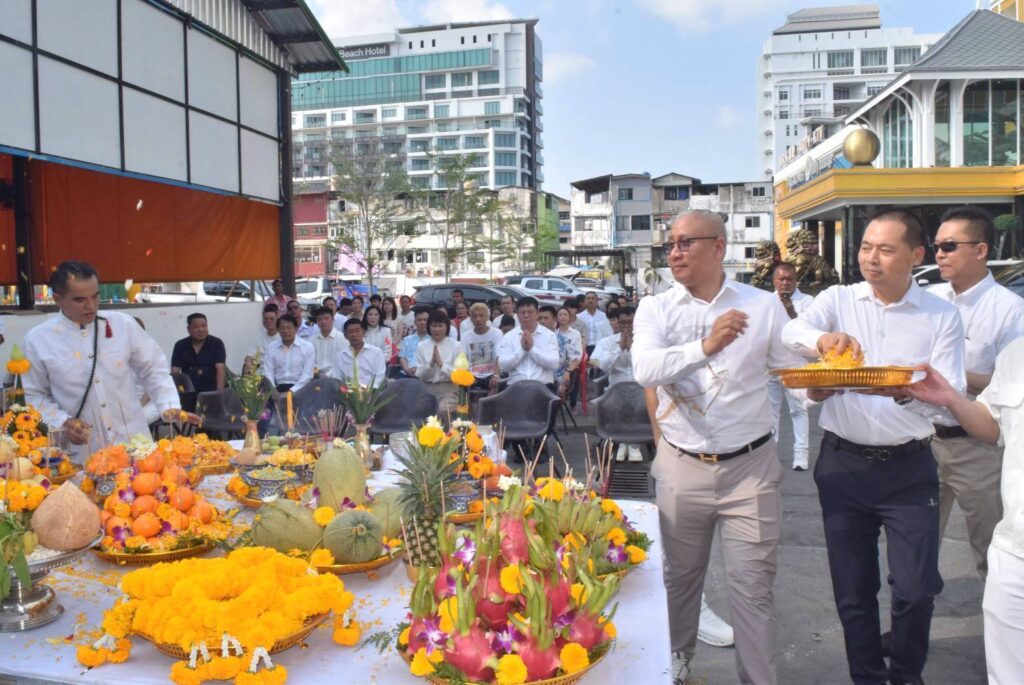 พิธีเริ่มขึ้นในเวลา 08.30 น. ด้วยการสักการะพระพรหมบริเวณด้านหน้าบริษัท เพื่อความเป็นสิริมงคลแก่สถานประกอบการ โดยได้นิมนต์พระสงฆ์ 9 รูปจากวัดบุณย์กัญจนาราม (วัดหนองพังแค) มาเจริญพระพุทธมนต์ก่อนจะเข้าสู่พิธีถวายภัตตาหารเพลแด่พระสงฆ์ในเวลา 09.30 น. ซึ่งผู้เข้าร่วมงานต่างพร้อมใจกันแต่งกายด้วยชุดสุภาพโทนสีขาวและสีอ่อน สะท้อนถึงความบริสุทธิ์และการเริ่มต้นสิ่งดีงามในศักราชใหม่