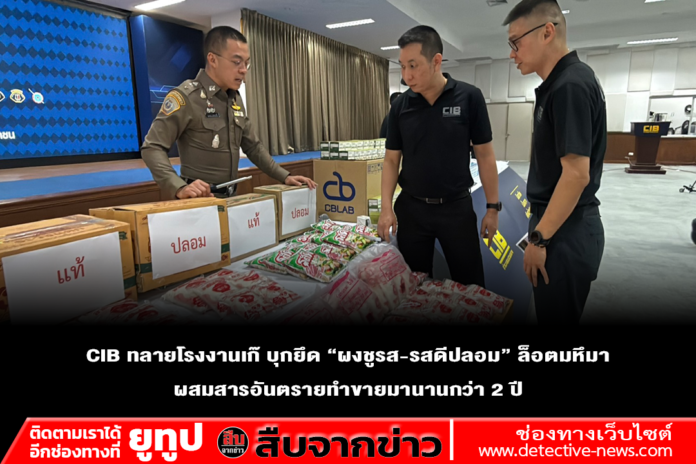 11.00 น. 17 เม.ย. 69 ที่ห้องประชุมชัยจินดา ชั้น 2 อาคารประชาอารักษ์ พล.ต.ท.ณัฐศักดิ์ เชาวนาศัย ผบช.ก. พร้อมด้วยเจ้าหน้าที่ บก.ปอศ. และตัวแทนจาก อย. ร่วมแถลงผลปฏิบัติการ “Take Down!! ขบวนการผลิตผงชูรส-รสดีปลอม” หลังขยายผลจับกุมเครือข่ายผลิตและจำหน่ายรายใหญ่ ยึดของกลางรวมกว่า 24,918 ชิ้น มูลค่าความเสียหายเกือบ 2 ล้านบาท