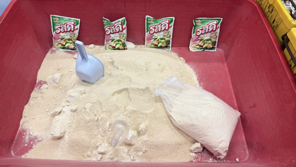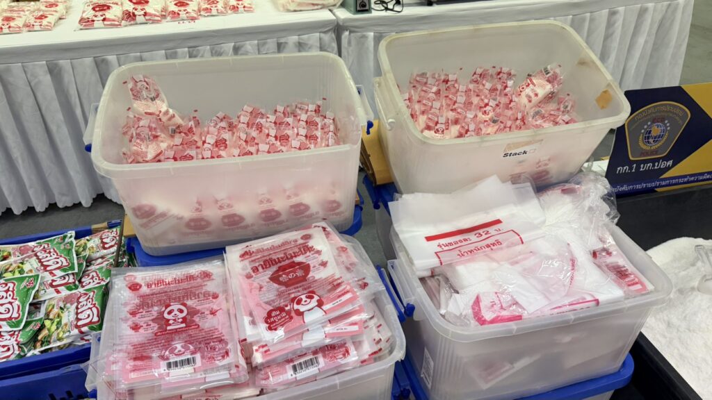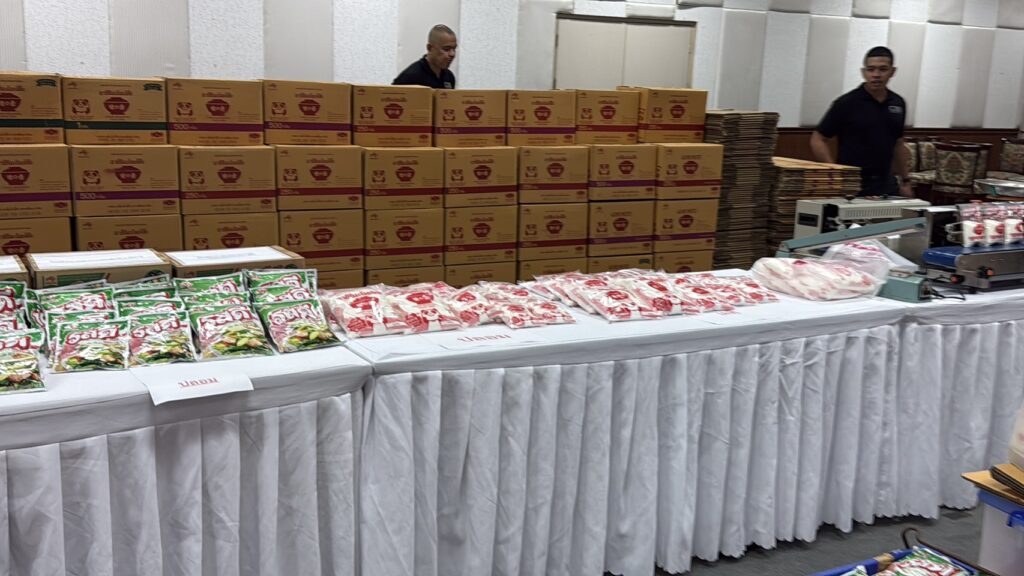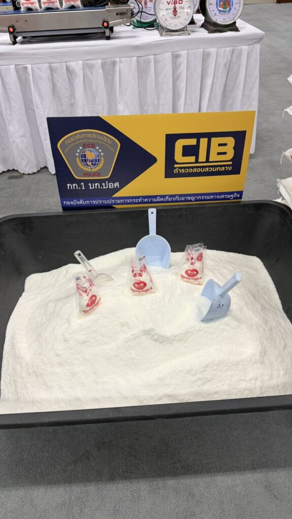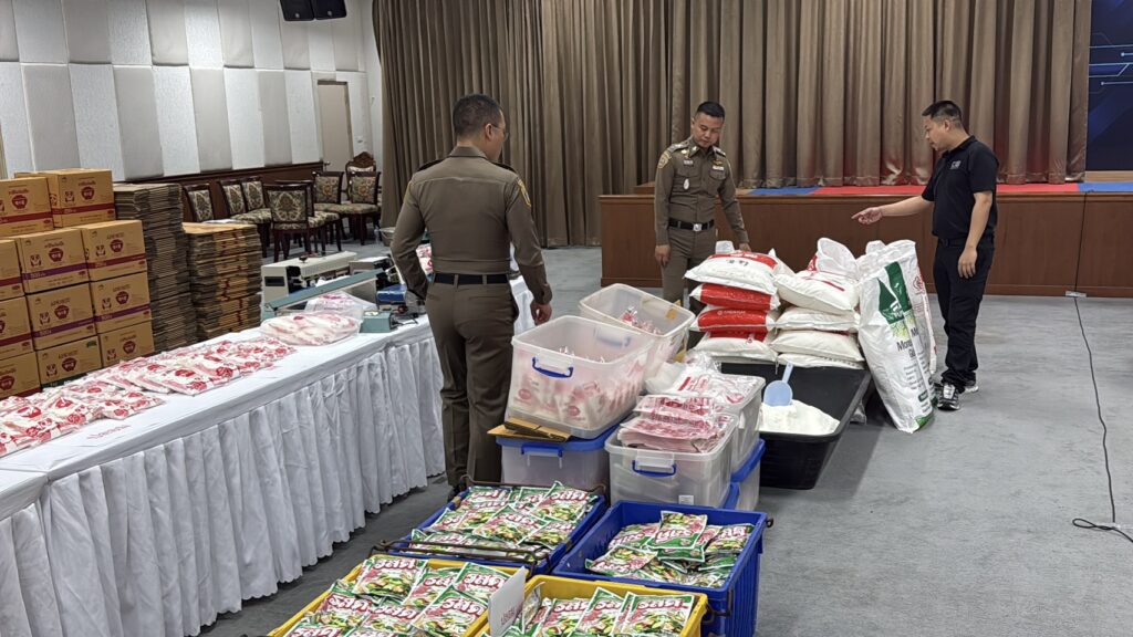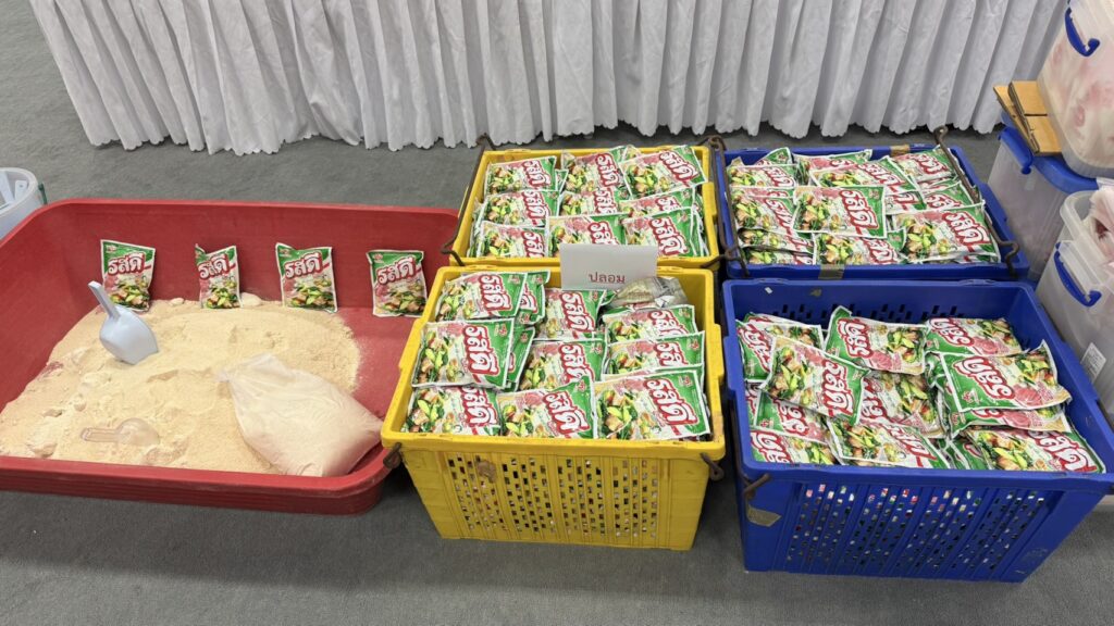 จากการตรวจสอบบ้านพักย่าน ซ.สะแกงาม 50 เขตบางขุนเทียน พบกลุ่มผู้ต้องหากำลังนั่งบรรจุผงชูรสและผงปรุงรสปลอมยี่ห้อดัง (อายิโนะโมะโต๊ะ และ รสดี) โดยใช้เครื่องจักรและอุปกรณ์การผลิตที่ไม่ได้มาตรฐาน รวมถึงวัตถุดิบที่อาจมีการปนเปื้อนสารอันตราย