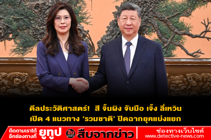 ภาพการจับมือกันที่มหาศาลาประชาชนในกรุงปักกิ่ง เมื่อวันที่ 10 เมษายน 2569 ระหว่างประธานาธิบดี สี จิ้นผิง และ เจิ้ง ลี่เหวิน หัวหน้าพรรคก๊กมินตั๋ง (KMT) ผู้นำฝ่ายค้านของไต้หวัน ไม่ใช่เพียงแค่การหารือเรื่องความสัมพันธ์ข้ามช่องแคบตามปกติ แต่คือ “จุดเปลี่ยนเชิงยุทธศาสตร์” ที่กำลังส่งแรงกระเพื่อมทั่วภูมิภาค