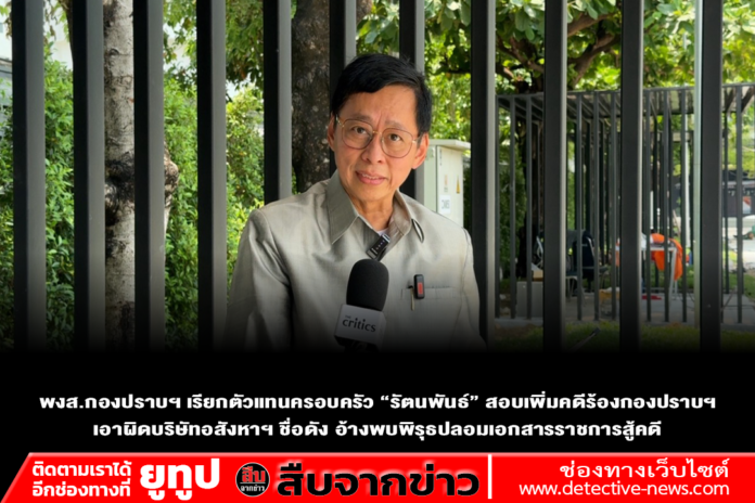 เมื่อเวลา 13.00 น. วันที่ 17 เม.ย.69 ที่ศูนย์รับแจ้งความกองบัญชาการตำรวจสอบสวนกลาง ถนนพหลโยธิน กทม. นายศรายุทธ รัตนพันธ์ อายุ 61 ปี ในฐานะตัวแทนครอบครัวรัตนพันธ์ เดินทางเข้าพบพนักงานสอบสวน กองกำกับการ 1 กองบังคับการปราบปราม เพื่อแจ้งความดำเนินคดีกับบริษัทอสังหาริมทรัพย์รายใหญ่และพวก โดยอ้างว่าพบพฤติการณ์ที่ไม่โปร่งใสเกี่ยวกับการใช้เอกสารในกระบวนการยุติธรรม