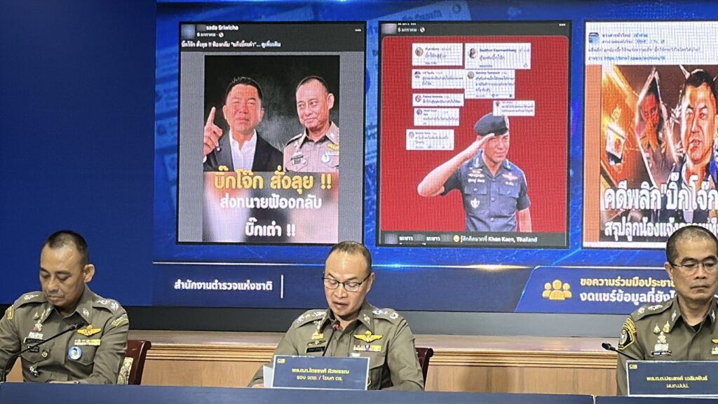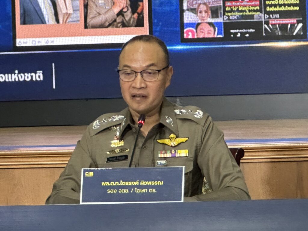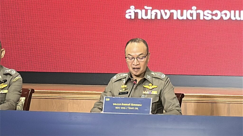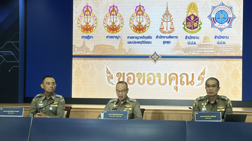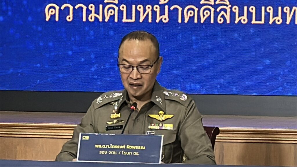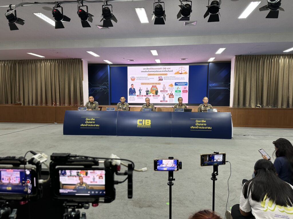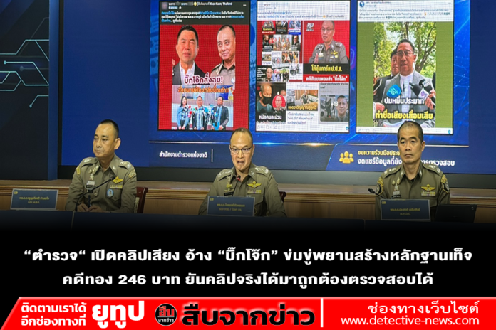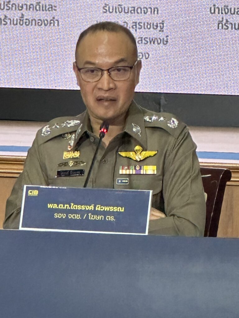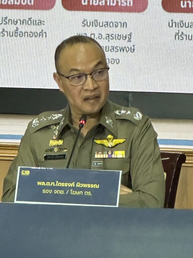เมื่อวันที่ 18 เม.ย. ที่กองบัญชาการตำรวจสอบสวนกลาง (บช.ก.) พล.ต.ท.ไตรรงค์ ผิวพรรณ รองจเรตำรวจแห่งชาติ ในฐานะโฆษกสำนักงานตำรวจแห่งชาติ พร้อมด้วย พล.ต.ต.จรูญเกียรติ ปานแก้ว รองผบช.ก., พล.ต.ต.ศิริวัฒน์ ดีพอ ผบก.สอท.1 , พล.ต.ต.ประสงค์ เฉลิมพันธ์ ผบก.ปปป.,พ.ต.อ.ภาณุมาศ แสงส่ง ผกก.1 บก.ปปป. ร่วมแถลงข่าวความคืบหน้าคดี สินบนทองคำ 246 ล้านบาท หลังส่งสำนวนคดีให้อัยการพิจารณา