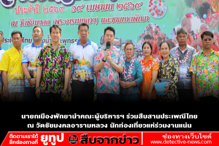 ช่วงเช้า (19 เมษายน 2569) นายปรเมศวร์ งามพิเชษฐ์ นายกเมืองพัทยา นำคณะผู้บริหารเมืองพัทยา เข้าร่วมกิจกรรมวันไหลพัทยา ณ วัดชัยมงคลอารามหลวง เพื่อร่วมสืบสานวัฒนธรรมอันดีงามในช่วงเทศกาลสงกรานต์ ท่ามกลางประชาชนและนักท่องเที่ยวทั้งชาวไทยและชาวต่างชาติที่เข้าร่วมงานอย่างเนืองแน่น