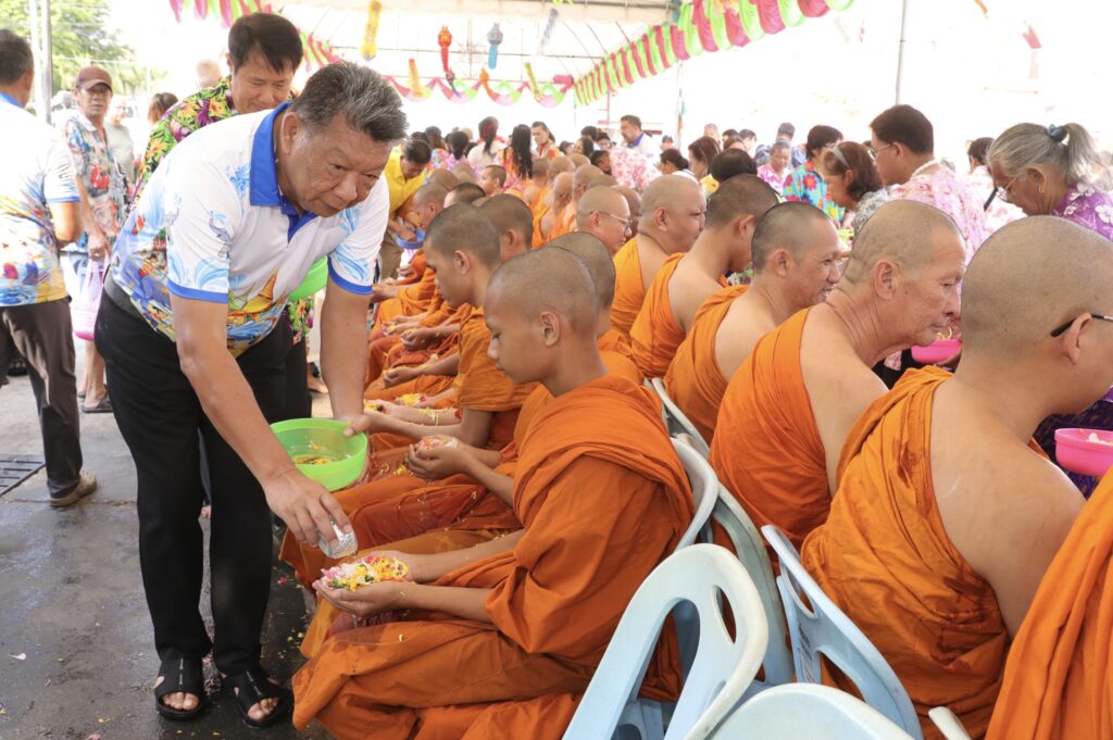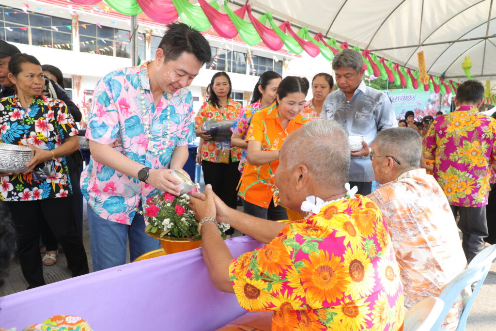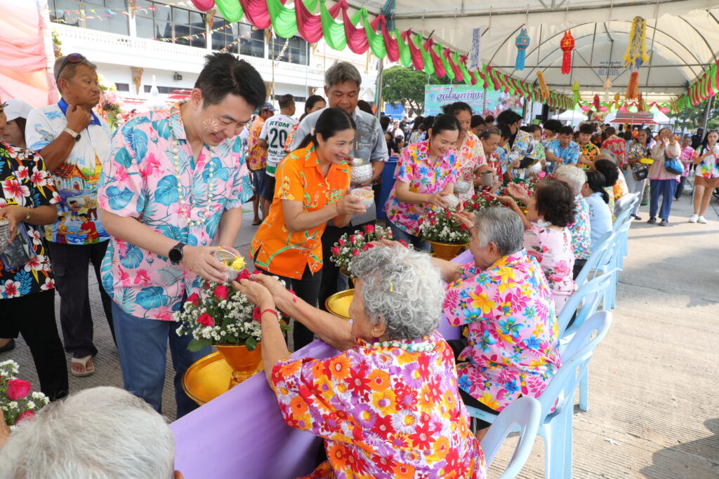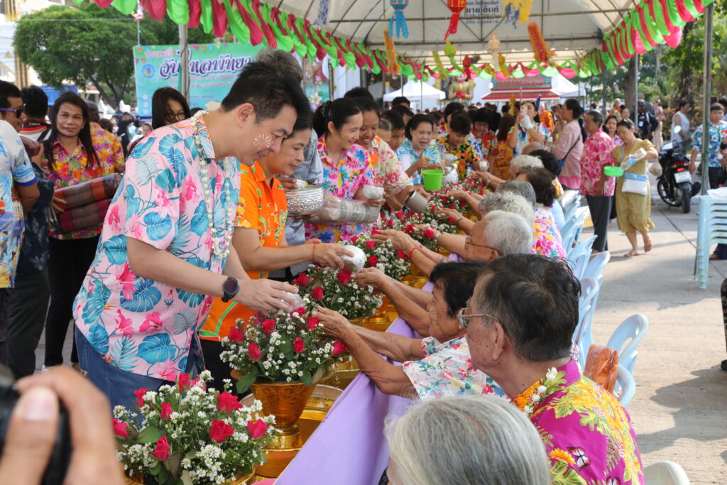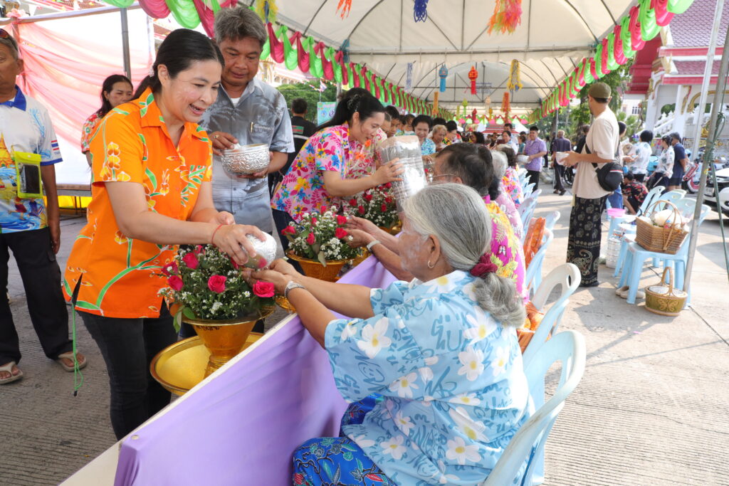 ภายในงานมีการประกอบพิธีทางศาสนาพิธีสรงน้ำพระพุทธรูป และพิธีรดน้ำดำหัวผู้สูงอายุ เพื่อความเป็นสิริมงคลตามขนบธรรมเนียมประเพณีไทย พร้อมทั้งจัดกิจกรรมละเล่นพื้นบ้าน สร้างสีสันและความประทับใจให้กับผู้เข้าร่วมงานเป็นอย่างยิ่ง
