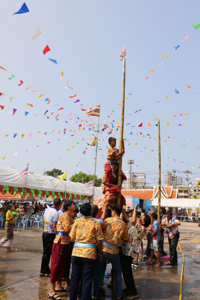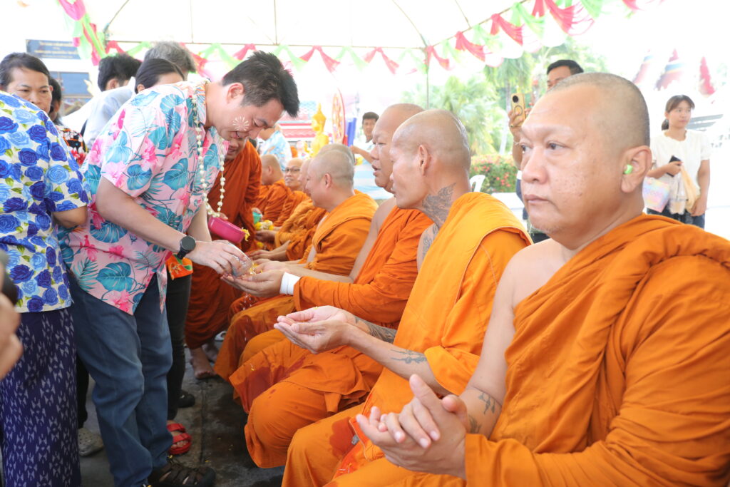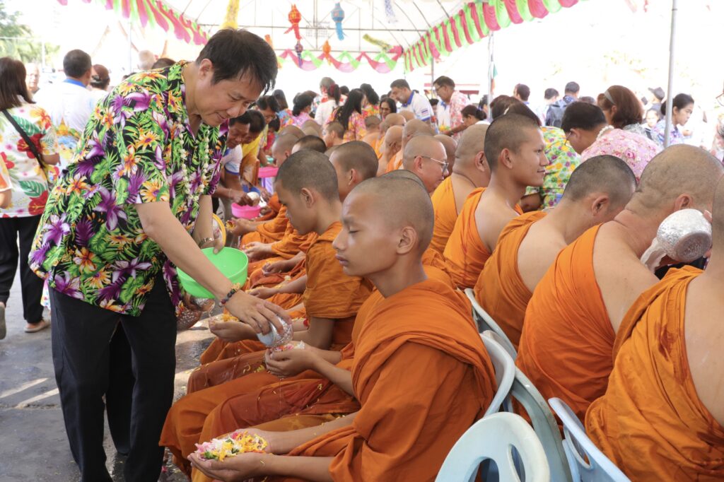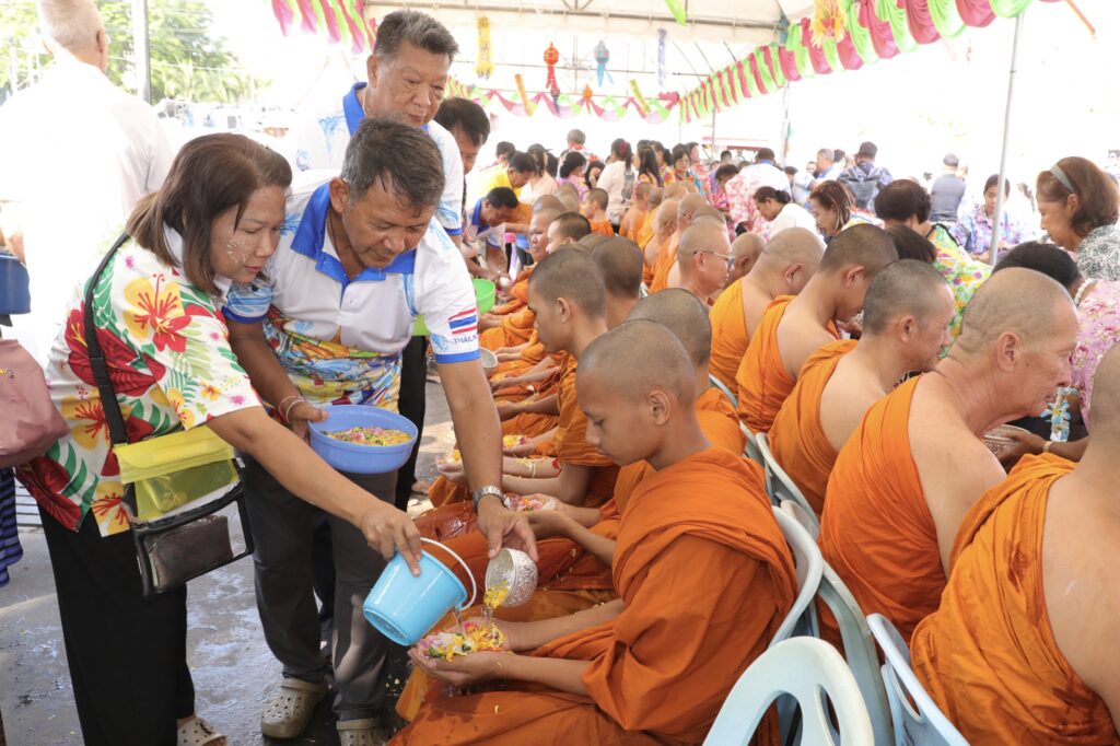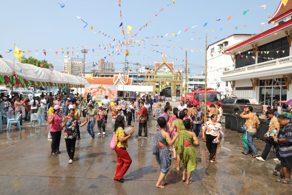 ภายในงานมีการประกอบพิธีทางศาสนาพิธีสรงน้ำพระพุทธรูป และพิธีรดน้ำดำหัวผู้สูงอายุ เพื่อความเป็นสิริมงคลตามขนบธรรมเนียมประเพณีไทย พร้อมทั้งจัดกิจกรรมละเล่นพื้นบ้าน สร้างสีสันและความประทับใจให้กับผู้เข้าร่วมงานเป็นอย่างยิ่ง
