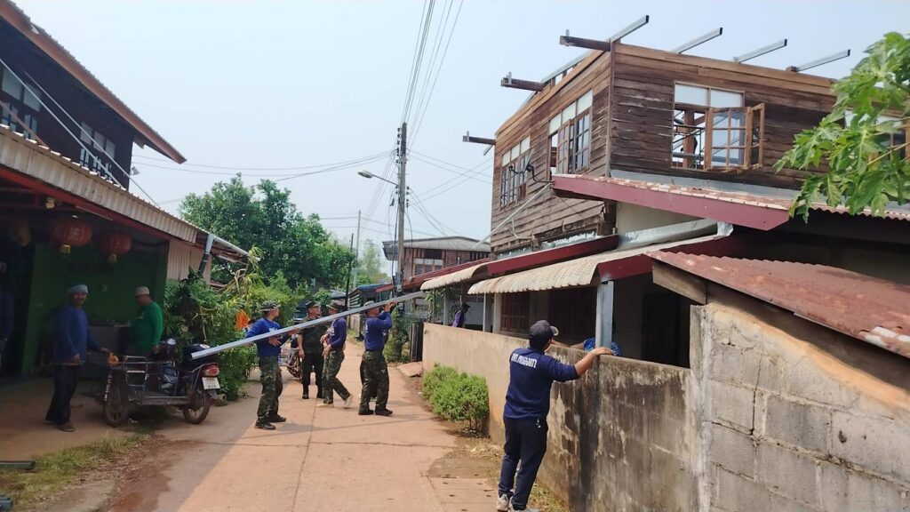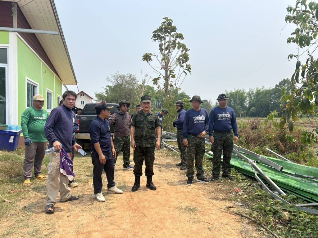 เมื่อวันที่ 18 เมษายน 2569 สถานีเรือบ้านแพง หน่วยเรือรักษาความสงบเรียบร้อยตามลำน้ำโขง (นรข.) เขตนครพนม ภายใต้การนำของ ว่าที่ ร.อ.เพชรนคร ผิวขำ หัวหน้าสถานีเรือบ้านแพง ได้นำกำลังพลจำนวน 10 นาย พร้อมรถยนต์บรรทุกขนาดเล็ก 1 คัน ลงพื้นที่ร่วมกับเจ้าหน้าที่องค์การบริหารส่วนตำบลหนองเทา ออกสำรวจความเสียหายและให้ความช่วยเหลือประชาชนที่ได้รับผลกระทบจากพายุฤดูร้อน ซึ่งเกิดขึ้นเมื่อวันที่ 17 เมษายนที่ผ่านมา