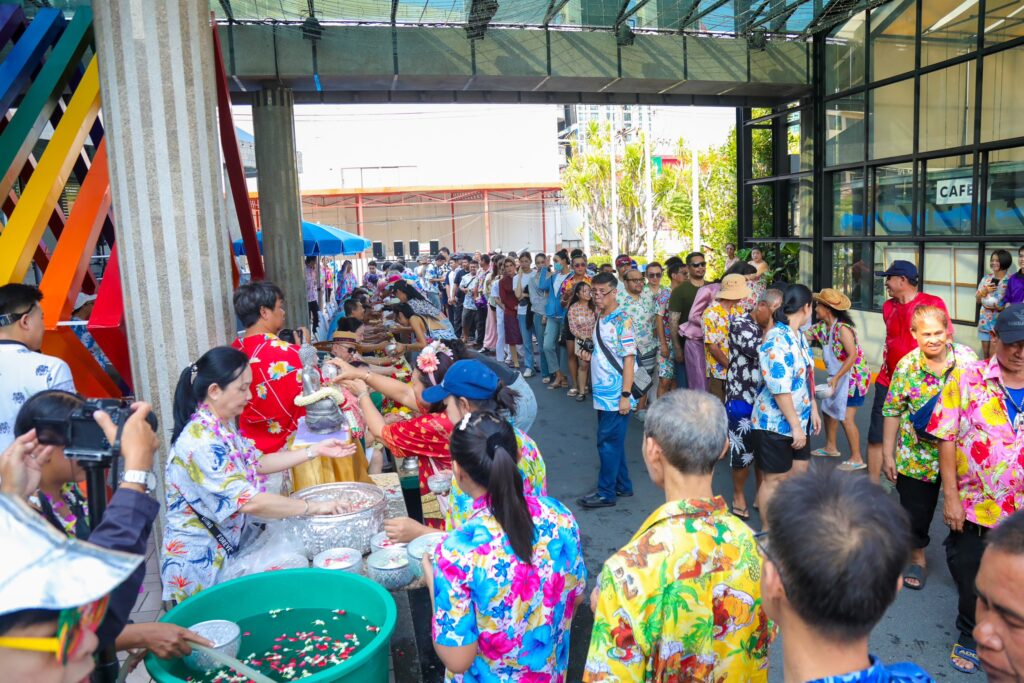 (19 เม.ย.69) บรรยากาศเทศกาลสงกรานต์-วันไหลพัทยา ยังคงคึกคักอย่างต่อเนื่อง บริษัท อัลคาซ่าร์ จำกัด ได้มีการจัดงานรดน้ำขอพร นายสมพันธ์ เพ็ชรตระกูล ประธานบริหาร บริษัท อัลคาซ่าร์จำกัด และประธานชมรมคนดีศรีเมืองชล และผู้อาวุโส เนื่องในเทศกาลสงกรานต์ เพื่อความเป็นสิริมงคล แสดงความเคารพและสืบสานวัฒนธรรมไทย ณ โรงละครอาคาซ่า พัทยา (สาย 2) ภายในงานบรรยากาศแบบไทย ๆ โดยเปิดโอกาสให้ พนักงาน มิตรสหาย และผู้ที่เคารพนับถือ ได้เข้าร่วมรดน้ำขอพร พร้อมร่วมสืบสานประเพณีอันดีงามของไทย ท่ามกลางบรรยากาศอบอุ่นและเป็นกันเองโดยจัดต่อเนื่องปีนี้เป็นปีที่ 44 ทั้งนี้ การรดน้ำดำหัวผู้ใหญ่ในช่วงเทศกาลสงกรานต์ ถือเป็นประเพณีสำคัญที่แสดงถึงความกตัญญู ความเคารพ และการขอพรเพื่อความเป็นสิริมงคลในชีวิต ซึ่งยังคงได้รับการอนุรักษ์และสืบทอดอย่างต่อเนื่องในสังคมไทย