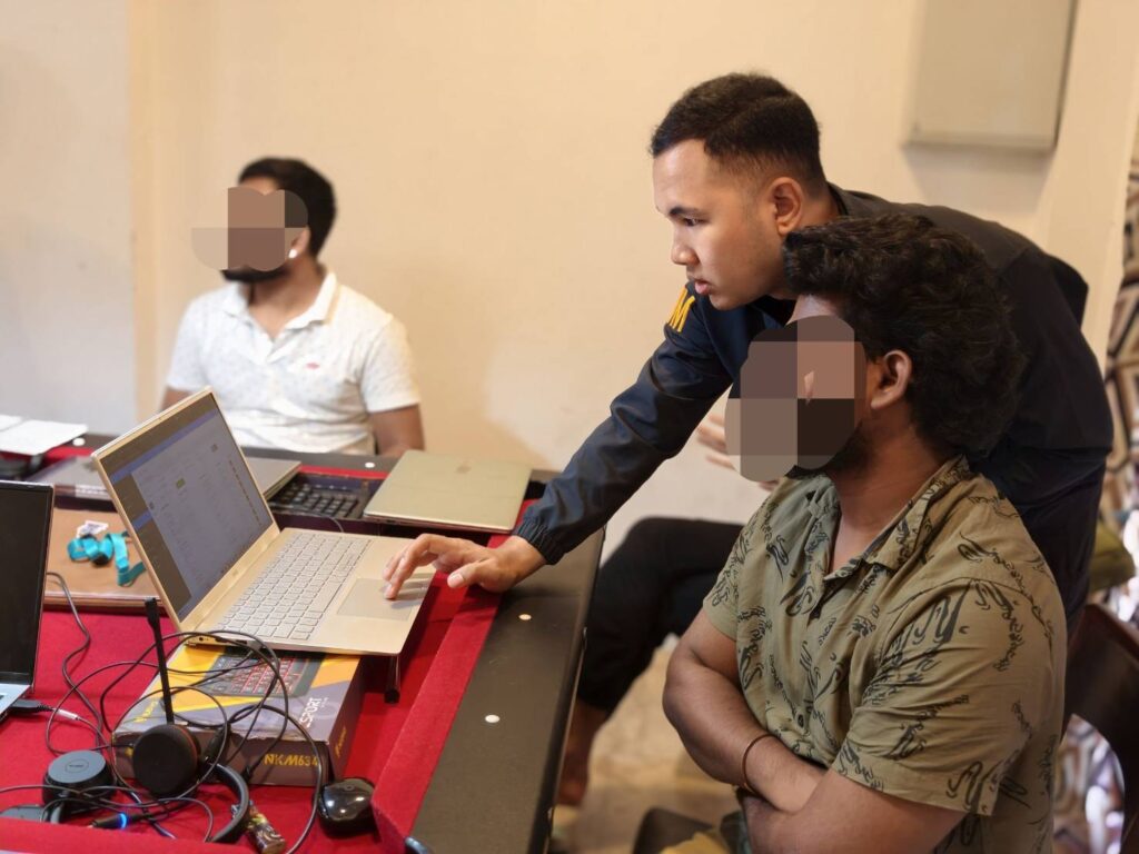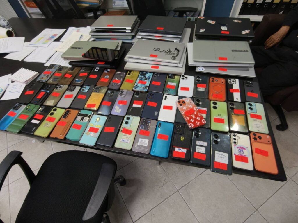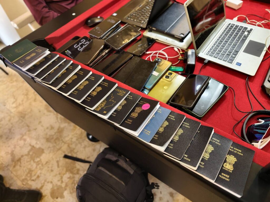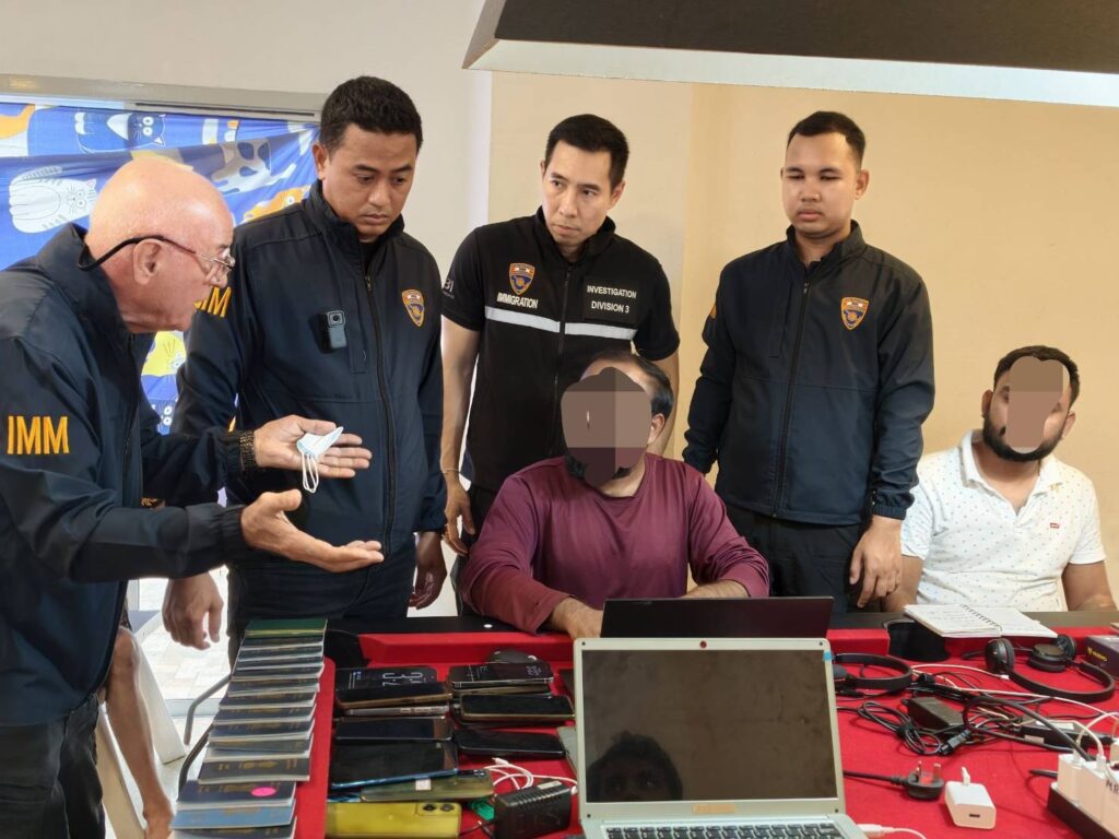 จากการตรวจค้นภายในบ้านพัก พบชาวอินเดียรวมทั้งหมด 30 คน แบ่งเป็นกลุ่มพนักงาน 19 คน กำลังนั่งปฏิบัติงานหน้าคอมพิวเตอร์โน้ตบุ๊กอยู่ที่ชั้นล่าง และอีก 11 คนกำลังพักผ่อนอยู่ที่ชั้นบนของบ้าน โดยมี MR.SANDEEP อายุ 40 ปี สัญชาติอินเดีย แสดงตัวเป็นบิ๊กบอสหัวหน้ากลุ่ม เจ้าหน้าที่ได้ตรวจยึดของกลางเป็นคอมพิวเตอร์โน้ตบุ๊ก 22 เครื่อง โทรศัพท์มือถือ 49 เครื่อง และสมุดบัญชีรายรับ-รายจ่ายหลายรายการ ซึ่งจากการตรวจสอบวีซ่าพบว่าส่วนใหญ่เดินทางเข้ามาด้วยวีซ่าท่องเที่ยวตั้งแต่เมื่อเดือนมีนาคมที่ผ่านมา