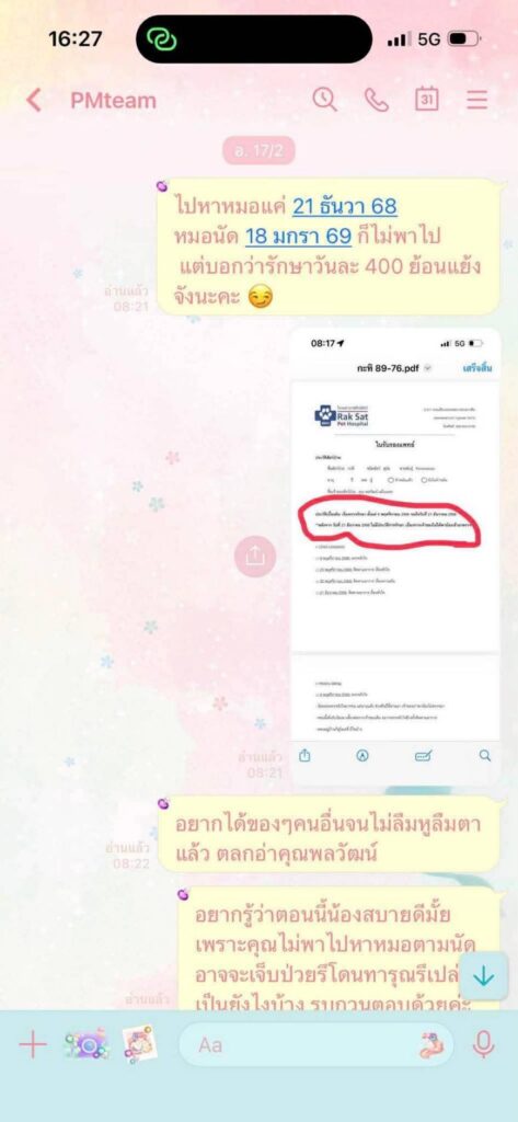 น.ส.แพร จึงตัดสินใจติดต่อคนรู้จักที่เคยช่วยเหลือกันมาตั้งแต่ปี 2564 เพื่อขอฝาก “น้องกะทิ” ไว้ชั่วคราว โดยมีการส่งมอบสุนัขให้ลูกบุญธรรมของคนรู้จักรายดังกล่าวไปดูแล และมีการตกลงกันชัดเจนว่า “หากอาการดีขึ้นจะมารับคืน”