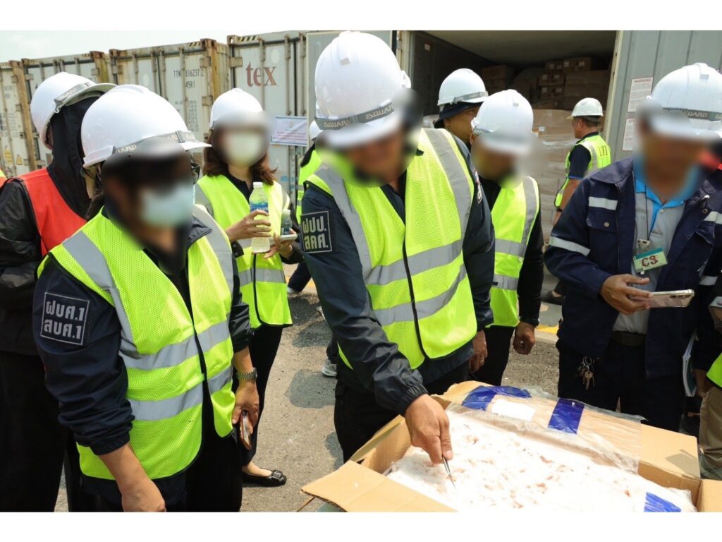 การปฏิบัติการครั้งนี้ นำโดยกรมศุลกากร กรมปศุสัตว์ และกรมสอบสวนคดีพิเศษ เข้าตรวจสอบตู้สินค้าจำนวน 32 ตู้คอนเทนเนอร์ นำเข้า ณ ท่าเรือแหลมฉบัง หลังพบพฤติการณ์ต้องสงสัยว่าเป็นการนำเข้าสินค้าโดยมิชอบ ซึ่งตู้สินค้าได้ถูกอายัดไว้ก่อนหน้านี้ ตั้งแต่ช่วงต้นปีที่ผ่านมา ได้แก่ วันที่ 21 มกราคม 2569 จำนวน 5 ตู้วันที่ 22 มกราคม 2569 จำนวน 26 ตู้ และวันที่ 14 กุมภาพันธ์ 2569 จำนวน 1 ตู้