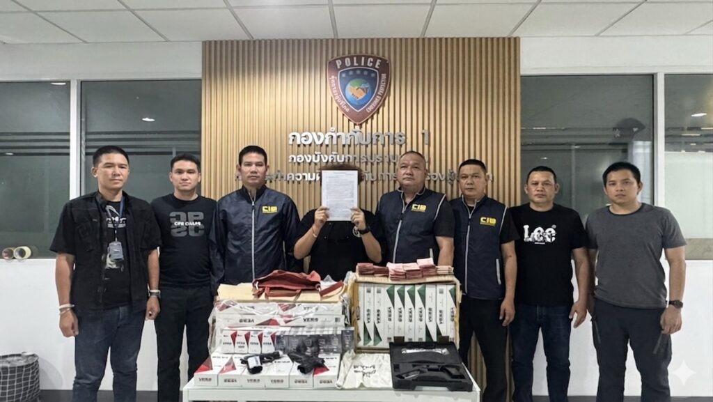 ตำรวจสอบสวนกลาง (CIB) โดย กองบังคับการปราบปรามการกระทำความผิดเกี่ยวกับการคุ้มครองผู้บริโภค รวบหนุ่มซื้อขายบุหรี่หนีภาษีผ่านไปรษณีย์ ไม่เนียน ไหวตัวทันมีพรายกระซิบแต่ไม่รอด เจอเจ้าหน้าที่แกะรอยจากเบอร์โทร – ชื่อปลอม จนมุมห้องพัก ผงะเจอทั้งปืน-เงินสด-คลังบุหรี่หนีภาษี