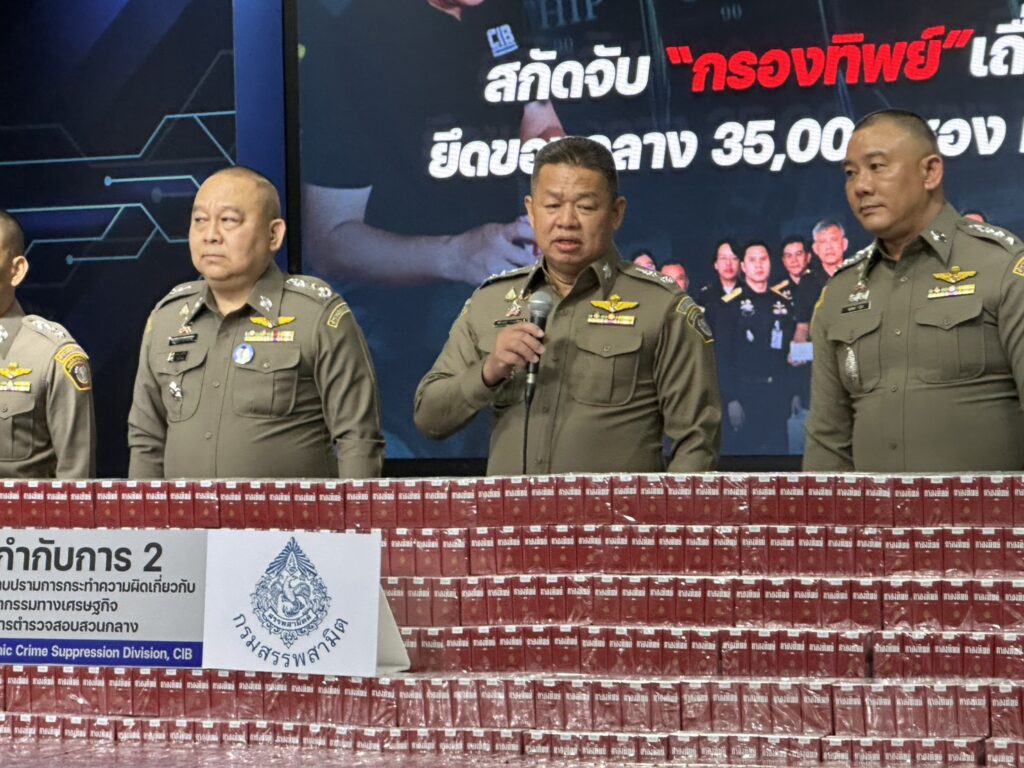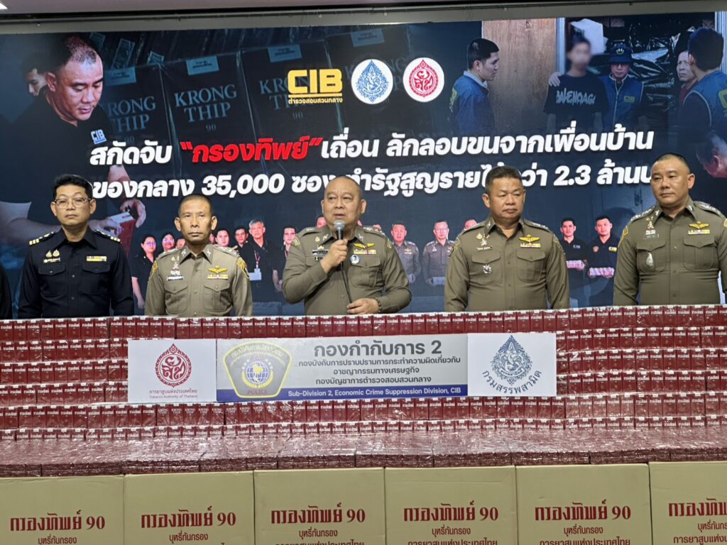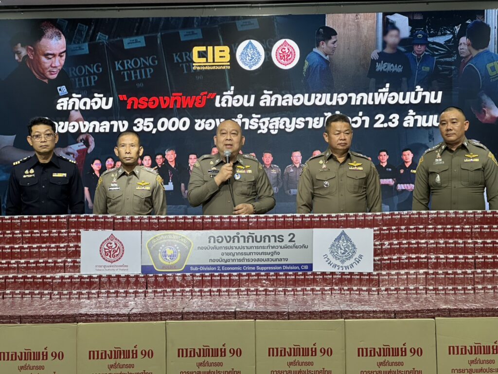 ตำรวจสอบสวนกลาง (CIB) โดย บก.ปอศ. ร่วมกับ กรมสรรพสามิต และ การยาสูบแห่งประเทศไทย สกัดจับ “กรองทิพย์เถื่อน” ลักลอบนำเข้าจากประเทศเพื่อนบ้าน ยึดของกลางมากถึง 35,000 ซอง ทำรัฐสูญเสียรายได้กว่า 2.3 ล้านบาท”