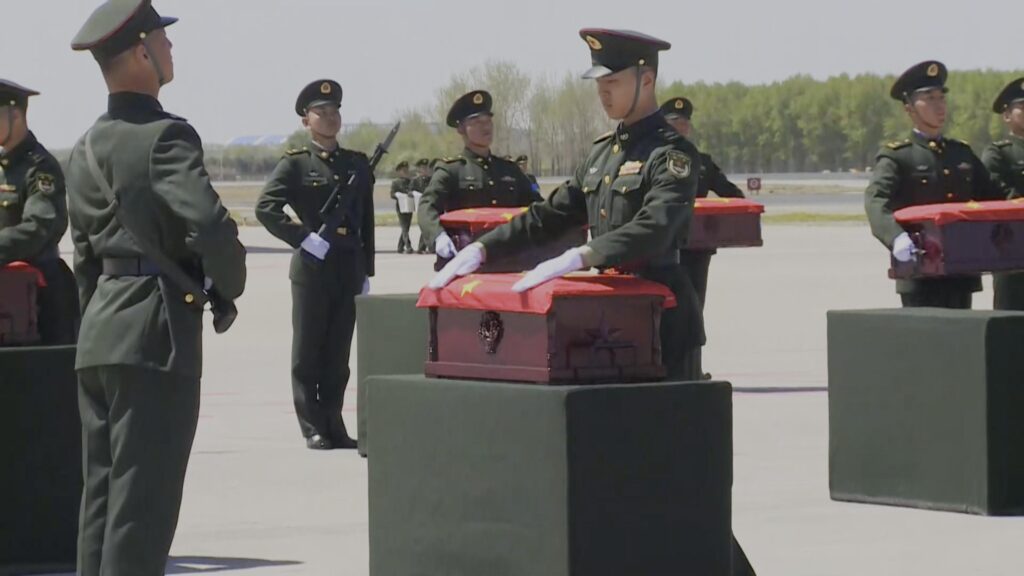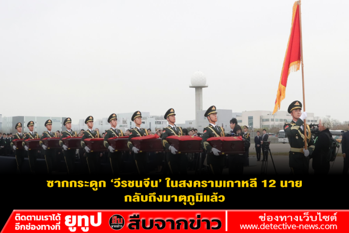 เสิ่นหยาง/อินชอน, 22 เม.ย. (ซินหัว) — วันพุธ (22 เม.ย.) เครื่องบินขนส่งขนาดใหญ่ รุ่นวาย-20บี ของกองทัพอากาศจีน ซึ่งบรรทุกซากกระดูกของทหารอาสาสมัครประชาชนจีน (CPV) ที่เสียชีวิตในสงครามต่อต้านการรุกรานของสหรัฐฯ และช่วยเหลือเกาหลี (ปี 1950-1953) จำนวน 12 นาย รวมถึงสิ่งของส่วนตัว 146 ชิ้น เดินทางจากสาธารณรัฐเกาหลี (เกาหลีใต้) ถึงท่าอากาศยานนานาชาติเถาเซียนในเมืองเสิ่นหยาง มณฑลเหลียวหนิงทางตะวันออกเฉียงเหนือของจีน โดยมีกองเครื่องบินรบ รุ่นเจ-20 (J-20) จำนวน 4 ลำ บินคุ้มกันหลังจากเข้าสู่น่านฟ้าจีน