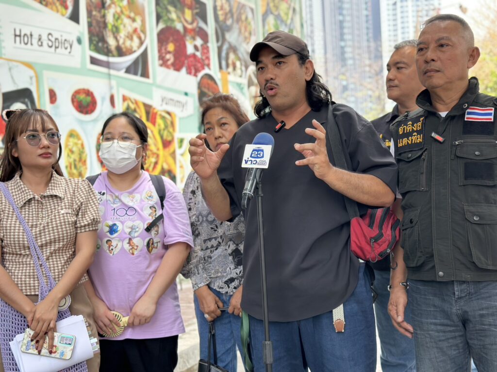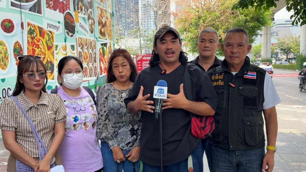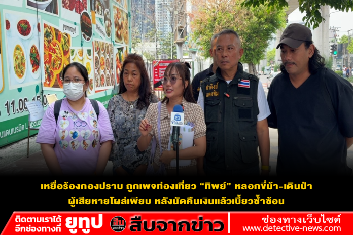 เมื่อเวลา 11.45 น. วันที่ 23 เม.ย. 69 ที่ บริเวณริมฟุตบาทหน้าแดนเนรมิตเก่า “จ่าคิงส์ แตงทิม สะพานใหม่” ได้นำ น้องฟ้า ลูกสาว”จ่ายันต์” อดีตทหารอากาศ สังกัด อย. พร้อมด้วยกลุ่มผู้เสียหาย เดินทางเข้าร้องเรียนต่อพนักงานสอบสวน กองบังคับการปราบปราม เพื่อขอความเป็นธรรมกรณีถูกเพจนำเที่ยวชื่อดังหลอกจัดทริปขี่ม้าและเดินป่า “ทิพย์” เชิดเงินหนีรวมมูลค่าความเสียหายหลายแสนบาท
