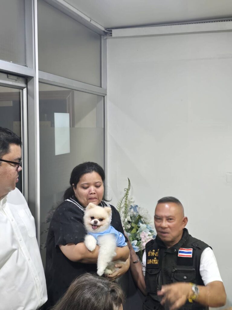 ล่าสุดวันนี้ (23 เม.ย. 2569) ณ สน. มีนบุรี ผกก.สน.มีนบุรี ได้เป็นตัวแทนในการนัดหมายส่งมอบคืนสุนัข วินาทีพบหน้า เมื่อตัวแทนฝั่งคนเลี้ยงนำน้องกะทิมาถึง คุณแพรและคุณเพชรถึงกับกลั้นน้ำตาไว้ไม่อยู่ ร้องไห้โฮและเข้าสวมกอดน้องกะทิด้วยความรักและความคิดถึง