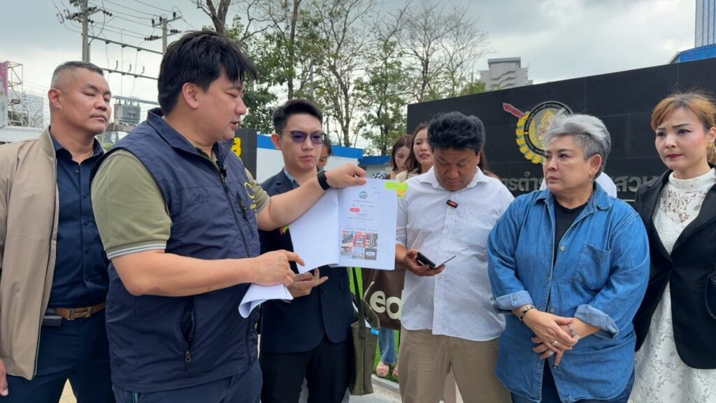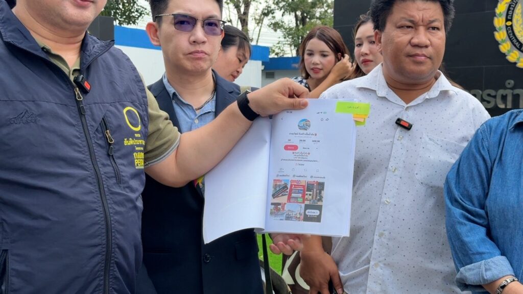 อี้ แทนคุณ ระบุว่า วันนี้พาผู้เสียหายจากทั่วประเทศ จากบริษัทที่มีชื่อย่อ “ T ” แอบอ้างว่าสามารถสร้างปั๊มน้ำมันแบรนด์ “ P “ได้ ประกาศชักชวนผ่านทาง TikTok ซึ่งมีคนเข้าถึงจำนวนมาก ผู้เสียหายแต่ละรายซึ่งมีที่ดินอยู่ จะต้องลงทุนค่าก่อสร้างและขออนุญาต รวมๆ แล้วตกรายละ 1.3-1.4 ล้านบาท แบ่งจ่ายสามงวด ๆ แรก สามแสนบาทเป็นค่าดำเนินการเกี่ยวกับการทำเอกสาร/ทำแบบ/ขออนุญาต