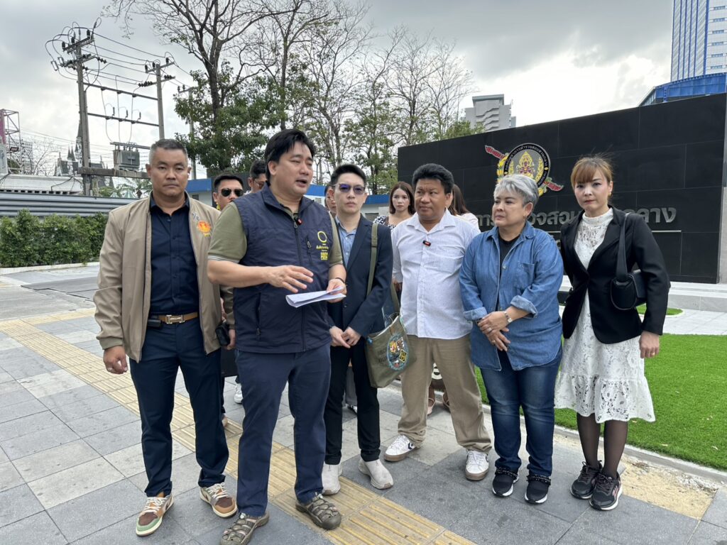 เมื่อเวลา 10.00 น. วันที่ 24 เม.ย.69 ที่ ศูนย์รับแจ้งความกองบัญชาการตำรวจสอบสวนกลาง (บช.ก.) ถนนพหลโยธิน นายแทนคุณ (อี้) จิตต์อิสระ ประธานชมรมสันติประชาธรรม พร้อมทีมงานพากลุ่มผู้เสียหาย 10 รายจากทั้งหมดจำนวน 24 คนทั่วประเทศ เดินทางเข้าพบพนักงานสอบสวน บก.ปอศ. (กองบังคับการปราบปรามการกระทำความผิดเกี่ยวกับอาชญากรรมทางเทคโนโลยีและเศรษฐกิจ) เพื่อปรึกษาข้อกฎหมายและบางรายที่ยังไม่แจ้งความท้องที่ก็จะได้ให้แจ้งความดำเนินคดีกรณีหลงเชื่อบริษัทสองพ่อลูก ชักชวนลงทุนสร้างปั๊มน้ำมัน ซึ่งมีบางรายสร้างเสร็จแต่ผิดแบบเมื่อยื่นขออนุญาตกรมพลังงานฯ ก็ไม่อนุญาต บางรายลงอุปกรณ์ก่อสร้างไว้ แต่ไม่มีการสร้างต่อให้เสร็จ จนพ้นกำหนดสัญญาที่ตกลงกันไว้ เมื่อตรวจสอบแล้วพบมีผู้เสียหายจำนวนมาก จึงเชื่อว่าบริษัทดังกล่าวมีเจตนาใช้ช่องกฎหมายเอาเปรียบผู้เสียหาย จึงร้องเรียนผ่านชมรมสันติประชาธรรม รวบรวมผู้เสียหายมาพบ พงส.บก.ปอศ.หาช่องทางกฎหมายดำเนินคดีกับบริษัทฯ ดังกล่าว