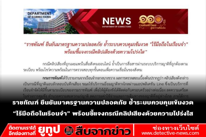 กรณีคลิปเสียงที่ถูกเผยแพร่ในสื่อสังคมออนไลน์ ย้ำเป็นการสื่อสารผ่านระบบบริการญาติที่ถูกต้องตามระเบียบ พร้อมโชว์ความพร้อมในการตรวจสอบทุกขั้นตอนเพื่อความเชื่อมั่นของสังคม