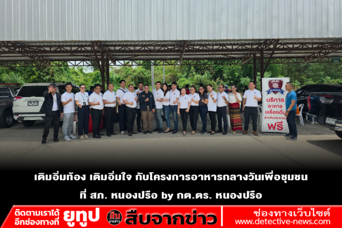 พ.ต.อ.ณัฐพล ผ่องสุขสกุล ผกก.สภ.หนองปรือ, พ.ต.ท.วิรัตน์ เทศทอง รอง ผกก.ป.สภ.หนองปรือ, พ.ต.ท.ธนา วิเศษชัย รอง ผกก.สส.สภ.หนองปรือ, คุณนพปฎล กองวิสัยสุข ประธานกกตหนองปรือและคณะ กกตร หนองปรือและที่ปรึกษา ได้ร่วมกันทำกิจกรรม โครงการอาหารกลางวัน
