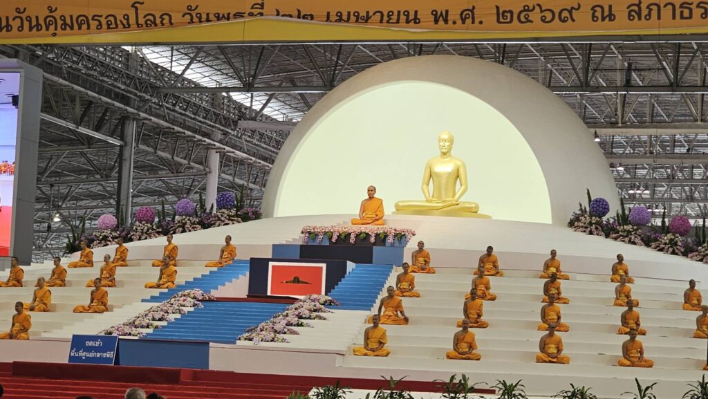 “….สิ่งมหัศจรรย์ที่สุดในงานวันที่ 22 เมษายน ไม่ใช่แค่คนจำนวนหลายแสนที่มารวมตัวกัน แต่คือ “ความเงียบที่ทรงพลัง” และ “ระเบียบที่ไร้รอยต่อ” สร้างปรากฎการณ์สะท้านโลก เมื่อทุกคน “สงบ” จน “ความเงียบ” กลายเป็นแรงสื่อสารที่ทรงพลังกว่าคำพูด ซึ่งวัดพระธรรมกาย จัดกิจกรรม วันคุ้มครองโลกครั้งนี้ด้วยแนวคิด “รักษ์โลกด้วยการรักษาใจ” ยกระดับเรื่องความยั่งยืนไปสู่มิติจิตวิญญาณว่า “โลกจะสะอาดได้ ใจต้องใสก่อน” พระสังฆาธิการและพุทธศาสนิกชนหลายแสนคนมารวมตัวที่เดียวกันโดยปราศจากความวุ่นวาย แต่เกิดความเป็นระเบียบระดับมิลลิเมตร ไม่ใช่เรื่องบังเอิญ แต่เกิดจากพลังศรัทธาที่มีจุดมุ่งหมายเดียวกัน ต่างกับการจัดงานในสถานที่ต่างๆที่มีคนมารวมตัวแค่หลักพัน มักเกิดสิ่งที่เรียกว่า “ความวุ่นวายโดยธรรมชาติ” แต่ในวัดพระธรรมกาย ทุกคนต่างรู้จุดหมายที่ชัดเจนของตัวเอง ลดการเดินไปมาอย่างไร้จุดหมาย การวางรองเท้า การเดิน และการนั่ง จึงเคลื่อนไหวแบบสอดคล้องในภาพเดียวกัน แม้มวลชนจะมหาศาล แต่พื้นที่นับพันไร่ยังสะอาดสะอ้าน ไม่ต้องรอให้มีเจ้าหน้าที่มาคอยสั่ง ทำให้ไม่มีขยะตกค้างในพื้นที่แม้กระทั่งห้องน้ำทุกห้องก็ยังสะอาดราวกับไม่เคยมีผู้เข้าไปใช้….”