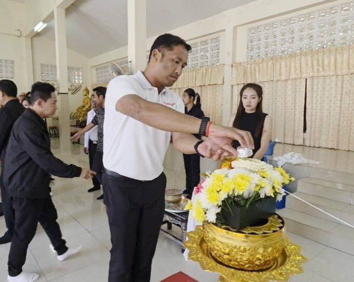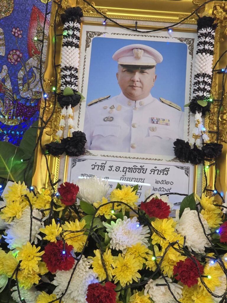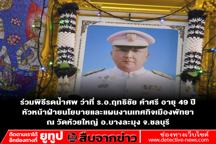 ร่วมพิธีรดน้ำศพ ว่าที่ ร.อ.ฤทธิชัย คำศรี อายุ 49 ปี หัวหน้าฝ่ายนโยบายและแผนงานเทศกิจเมืองพัทยา ณ วัดห้วยใหญ่ อ.บางละมุง จ.ชลบุรี แขกผู้มีเกียรติร่วมแสดงความไว้อาลัยพร้อมเพรียง