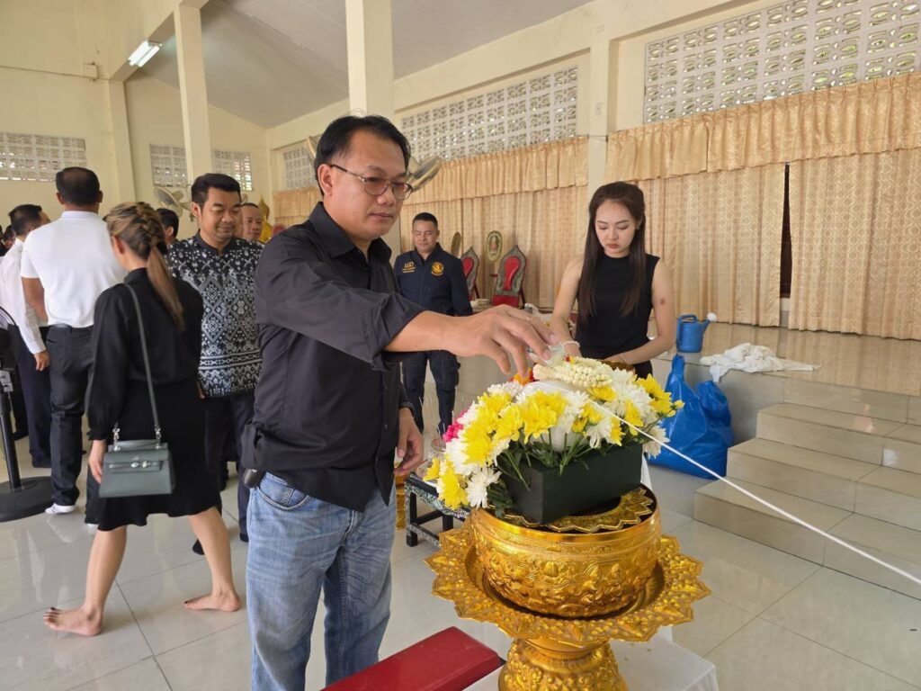 เวลา 16.00 น.วันที่ 24 เมษายน 2569 นายวุฒิศักดิ์ เริ่มกิจการ นายดำรงค์เกียรติ พินิจการ รองนายกเมืองพัทยา ผู้แทน นายปรเมศวร์ งามพิเชษฐ์ นายกเมืองพัทยา เป็นประธานพิธีรดน้ำศพ ว่าที่ ร.อ.ฤทธิชัย คำศรี อายุ 49 ปี หัวหน้าฝ่ายนโยบายและแผนงานเทศกิจเมืองพัทยา ณ วัดห้วยใหญ่ อ.บางละมุง จ.ชลบุรี
