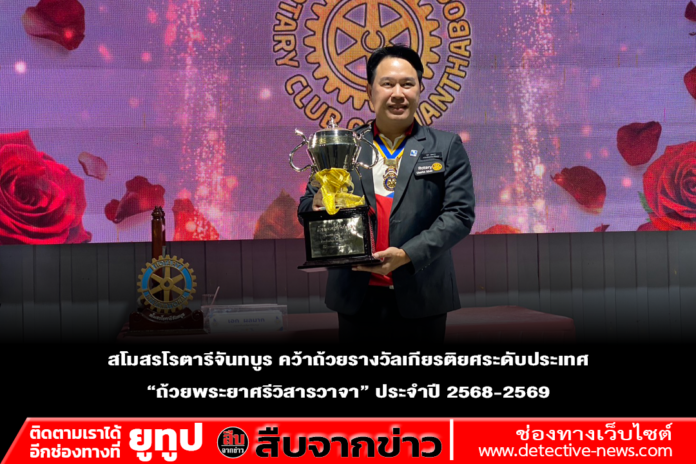 สโมสรโรตารีจันทบูร ได้รับการยกย่องให้เป็นสโมสรที่มี “กิจกรรมบริการชุมชนที่ดีเด่นที่สุดในรอบปี” ของภาค 3340 ประจำปีการบริหาร 2568-2569 จึงเป็นที่มาของการได้รับมอบ “ถ้วยพระยาศรีวิสารวาจา” รางวัลอันเป็นสัญลักษณ์แห่งความมุ่งมั่นในการบำเพ็ญประโยชน์เพื่อสังคมและชุมชนอย่างแท้จริง