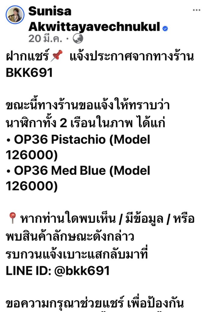 – เชิดสินค้าฝากขาย รับฝากกระเป๋า-นาฬิกาหรูกว่า 100 รายการ อ้างว่านำไปถ่ายรูปหรือขายให้ลูกค้าต่างชาติ แต่แท้จริงกลับนำไปจำนำหรือขายต่อโดยไม่แจ้งเจ้าของ
