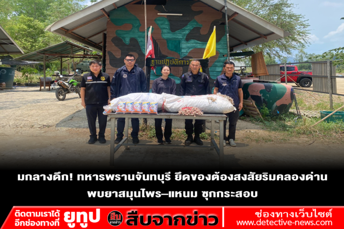 ต่อมาเวลา 03.30 น. เจ้าหน้าที่ตรวจพบกระสอบสีขาวจำนวน 2 ใบ วางอยู่บริเวณ ริมคลองด่าน หมู่ 4 ต.เทพนิมิต อ.โป่งน้ำร้อน จ.จันทบุรี จึงเข้าทำการตรวจสอบ