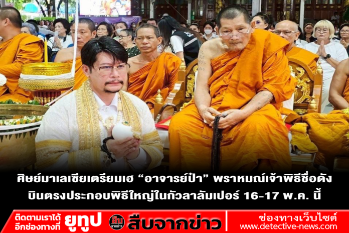 กัวลาลัมเปอร์, มาเลเซีย – กลายเป็นกระแสฮือฮาในกลุ่มผู้ศรัทธา เมื่อเหล่าลูกศิษย์ชาวมาเลเซียร่วมกันนิมนต์ อาจารย์ป๋า (ปุญญาดิศ เถียรวิชิต) พราหมณ์เจ้าพิธีชื่อดัง ผู้เป็นศิษย์เอกเพียงหนึ่งเดียวของ “หลวงปู่มหาศิลา สิริจันโท” เดินทางไปประกอบพิธีมงคลและพบปะศิษย์ ที่ ประเทศมาเลเซีย ในวันที่ 16-17 พฤษภาคม 2569 นี้
