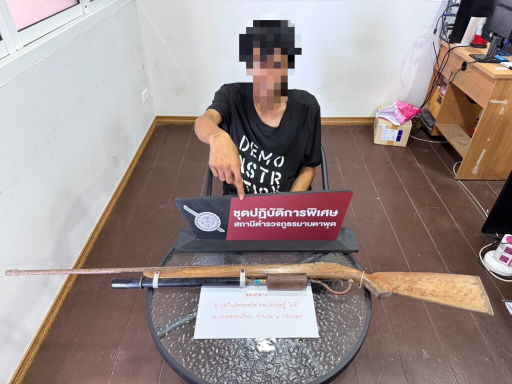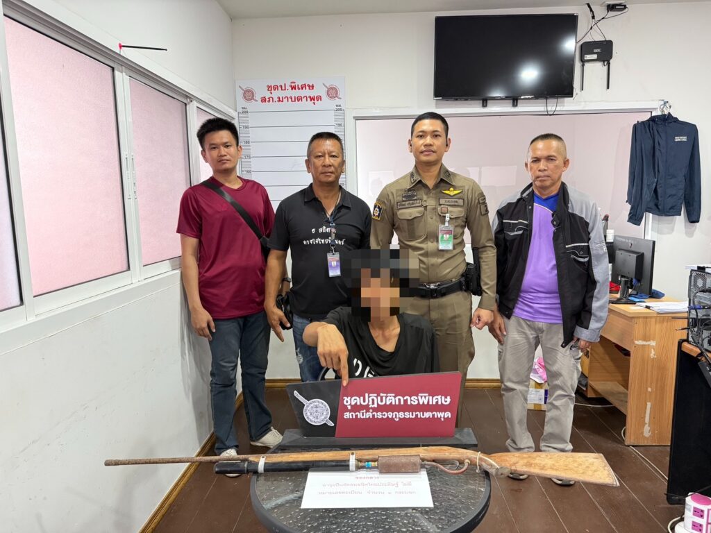 ระยอง – ตำรวจ สภ.มาบตาพุด บุกจับกุมชายวัย 35 ปี หลังพบครอบครองอาวุธปืนโดยไม่ได้รับอนุญาต ภายในห้องเช่าไม่มีเลขที่ ย่านมาบตาพุด