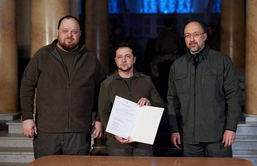 เซเลนสกีลงนามสมัครขอเป็นสมาชิกสหภาพยุโรป หรือ EU / Ukrainian Presidential Press Service/Handout via REUTERS